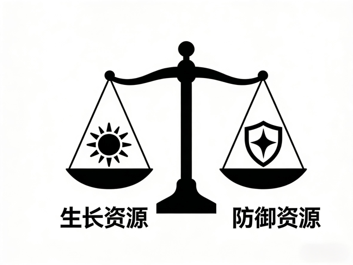 像精打细算的管家,植物会把碳、氮和能量用在刀刃上。天气好时,重点投资生长,枝繁叶茂。一旦环境变差——比如干旱或盐碱来了——资源会立刻向防御倾斜,生长则暂时放缓。