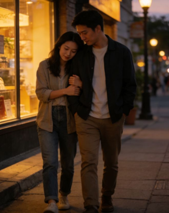 这不是对于亲密的许可,而是她需要缔造一种私东说念主的、感官上的阐明。她的围聚是一种无声的宣言:挽罢手臂,把头靠在你肩上,大略不自发地玩你外衣的拉链。这些幽微的四肢,okooo是在用触觉“认领”你。