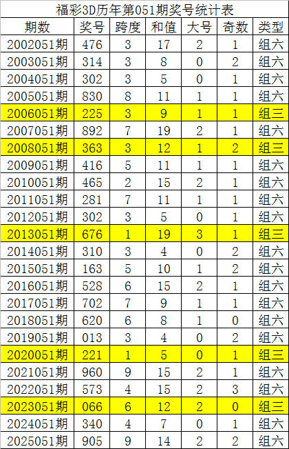 福彩3D积年第051期同期鉴别开出奖号:476、314、302、830、225、892、363、416、465、281、302、676、310、163、528、702、620、013、221、960、573、066、340、905,详备统计见下表:
