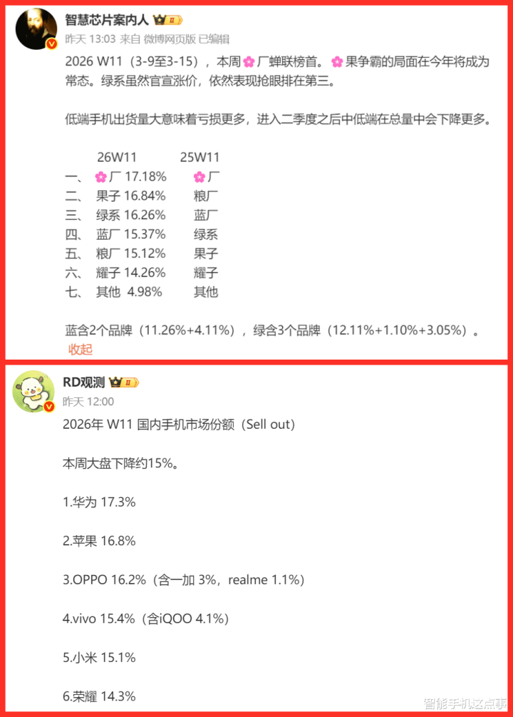 另外要说的是,低端机赔本,中低端占比下跌,这是W11数据里最值得警惕的信号。