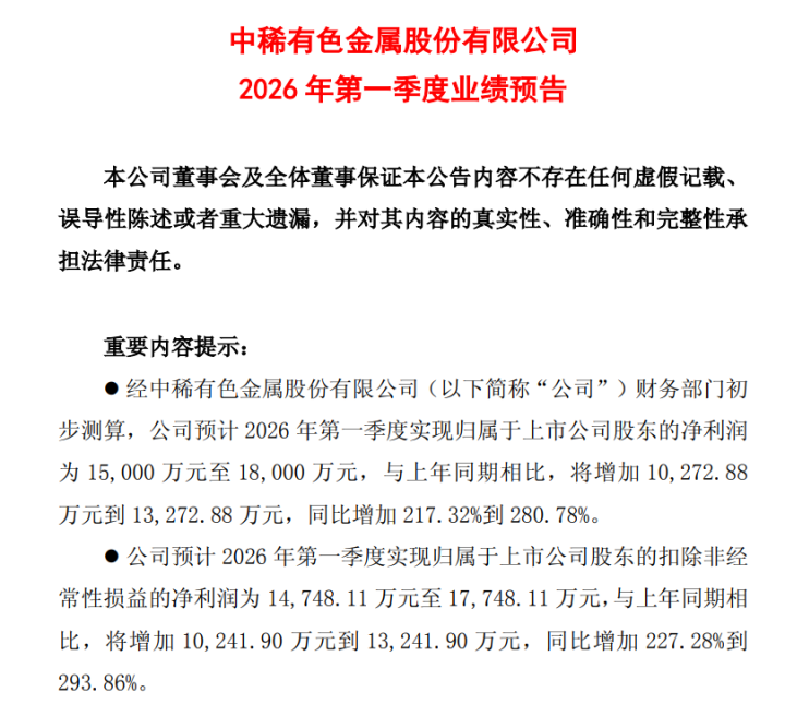4月10日,中保重色(600259.SH)发布公告,公司预测2026年第一季度结束包摄于上市公司鼓励的净利润为1.5亿元至1.8亿元,同比加多217.32%到280.78%。
