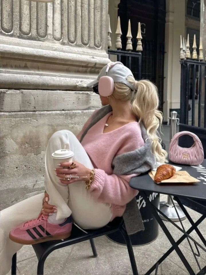 一件粉色的卫衣或然粉色的短外衣,底下搭一条中蓝色的直筒牛仔裤,脚上踩一对小白鞋,这套搭配你拿去任何处所都不会有问题,何况一稔的东说念主会赫然比穿全身黑的东说念主看上去气色更好、现象更年青。