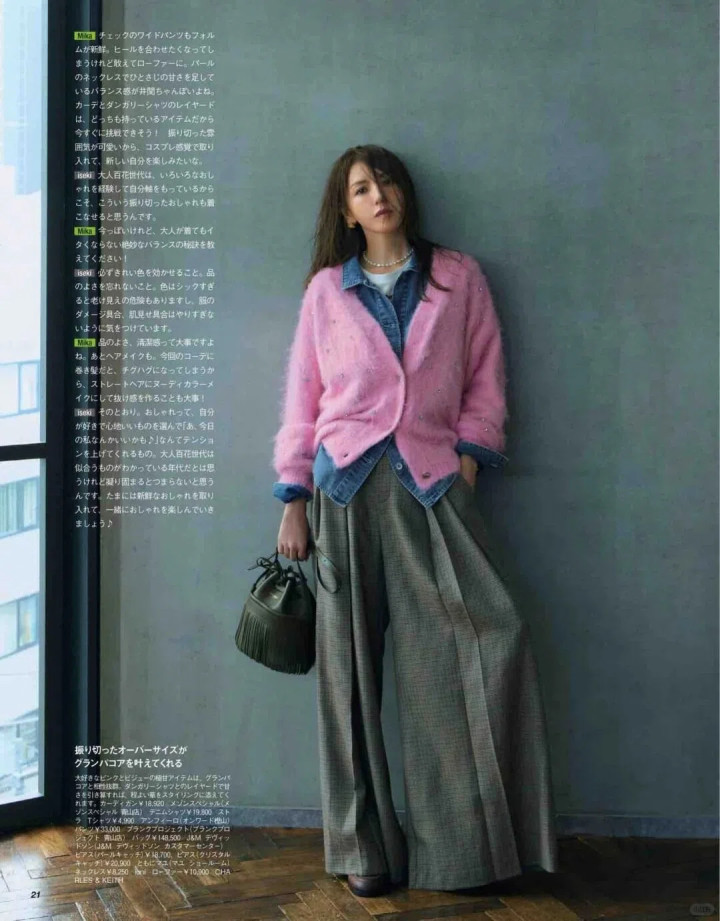 粉色能减龄,不是因为它“仙女”,而是它的色光能中庸亚洲东说念主面部多量存在的暗黄和青灰,尤其过了35岁之后头部血色感逐年着落,穿玄色穿灰色只会加剧气色上的暗千里,而一件粉色上衣逼近面部,能给皮肤作念一层最自然的补色。