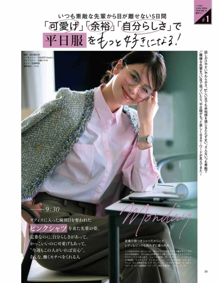 ✔ 棕裤子+粉上衣,正式优雅又减龄