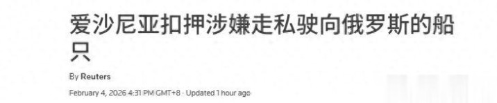 “大胆!爱沙尼亚海军已扣留一艘挂巴哈马国旗的集装箱船,该船正驶往俄罗斯”,当地时间2026年2月4日,英国媒体路透社,俄罗斯媒体等报道称,爱沙尼亚海军在波罗的海海域扣留一艘,载有俄罗斯船员的集装箱船,“波罗的海精神号”,爱沙尼亚海军声称,怀疑这艘货轮,从厄瓜多尔走私了货物,需要强行登船检查。结果检查完毕,爱沙尼亚海军对俄罗斯货轮,“波罗的海精神号”进行了扣押。
